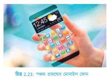 পঞ্চম প্রজন্ম (Fifth Generation-5G: 2020-…….) 5G বা পঞ্চম প্রজন্মের মোবাইল ফোন নেটওয়ার্ক সিস্টেম মোবাইল ফোনের মধ্যে অত্যাধুনিক ও সর্বশেষ সংস্করণ। এ ধরনের মোবাইল ফোন নেটওয়ার্ক ওয়্যারলেস ওয়ার্ল্ড ওয়াইড ওয়েব (World Wide Wireless Web) বা সংক্ষেপে WWWW নামে পরিচিত। এ ধরনের মোবাইল ফোনের স্ট্যান্ডার্ডগুলোর মধ্যে 5G NR (New Radio Technology), RAT (Radio Access Technology), MIMO (Multiple Input Multiple Output) অন্যতম। এই প্রজন্মের মোবাইল ফোনের পারফরম্যান্স 4G’র তুলনায় অনেক গুণ বেশি এবং অনেক দ্রুতগতিতে ডেটা ট্রান্সফার করতে সক্ষম। এর মাধ্যমে 4k টিভি বা ভিডিও(4000×2000 পিক্সেল) উপভোগ করা যায়।