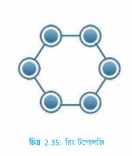 যে টপোলজিতে রিং-এর ন্যায় কম্পিউটার নোডগুলো চক্রাকার পথে পরস্পরের সাথে সংযুক্ত হয়ে নেটওয়ার্কে প্রথম ও সর্বশেষ কম্পিউটার পরস্পরের সাথে যুক্ত থাকে এবং এতে কেন্দ্রীয় কোনো ডিভাইস বা সার্ভারের প্রয়োজন হয় না।