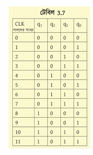 টেবিলে প্রথম q0-এর মান সবচেয়ে ডানদিকে বসিয়ে q1, q2, q3 গুলো ক্রমান্বয়ে তার বামে বসানোর কারণে আমরা টেবিলের দিকে তাকালেই দেখতে পাব q3, q2, q1, q0 আসলে একটি কাউন্টারের আউটপুট যেটি ক্লক পালসকে বাইনারি সংখ্যা হিসেবে গুণছে। এই ধরনের কাউন্টারকে বলা হয় রিপল কাউন্টার।