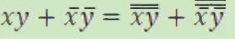 একইভাবে শুধু NOR ব্যবহার করে X-NOR তৈরি করতে হলে xy এবং x y এর ভেতরকার বুলিয়ান গুণকে ডি মরগান সূত্র ব্যবহার করে যোগে রূপান্তর করতে হবে। X-NOR এর লজিক xy + x y অপরিবর্তিত রেখে দ্বৈত পরিপূরক করা হলে আমরা পাই: