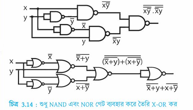 শুধু NAND এবং NOR গেট ব্যবহার করে তৈরি X-OR কর।
